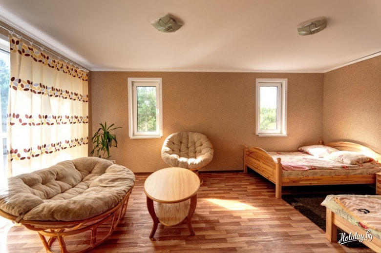 Радушно встретят, уютно разместят, вкусно накормят, предложат развлечения на любой вкус! Усадьба расположена в 150 км от Минска и представляет собой двухэтажный дом с тремя спальнями и универсальной комнатой, где можно как отдыхать, так и активно проводить время. Дом рассчитан на остановку до 18 человек. Для отдыхающих созданы все условия, чтобы отдых за городом был преисполнен только радостных эмоций: дом оборудован теплыми полами, горячая вода есть круглый год, в двух ванных комнатах гости найдут все необходимые предметы гигиены, на кухне — бытовую технику, в том числе и печь-камин-барбекю из старинного кирпича (ему уже около двух столетий!). В интерьере дома продумана каждая мелочь.