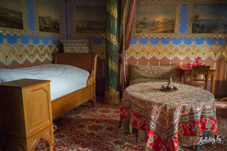 Огромные фрески с изображением рыцарей, легендарных героев, сюжетов вагнеровских произведений и простых жителей замка. Спальни в турецком стиле соседствуют с уголками для чтения с изящными креслами в духе романтизма. «Рояль Вагнера», на котором композитор исполнял как свои произведения, так и сочинения Людвига Второго.