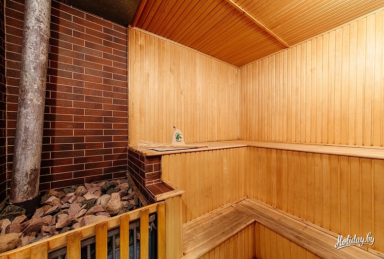 Максимальное количество спальных мест в доме — 7, для организации праздничного мероприятие возможно количества приглашенных до 16 человек. Есть сауна на дровах с эфирными маслами и купелью внутри коттеджа.