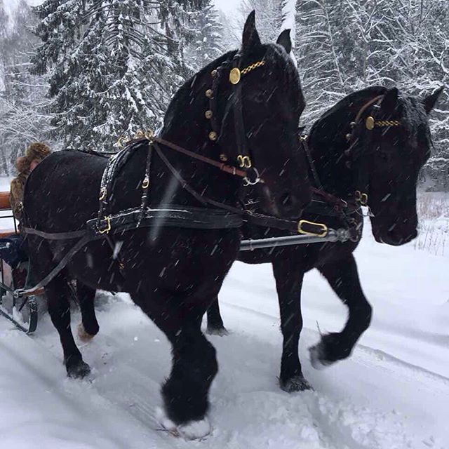 Отличное место для семейного отдыха! Детям будет очень интересно. В усадьбе есть зоопарк с пони, козлятами, ягнятами, кроликами, птичий двор, детская игровая площадка. Ну и главное - какая зима без саней с бубенцами! На фото ниже красавцы Гром и Сокол. А еще в усадьбе есть русская баня на дровах и можно остаться на ночь.