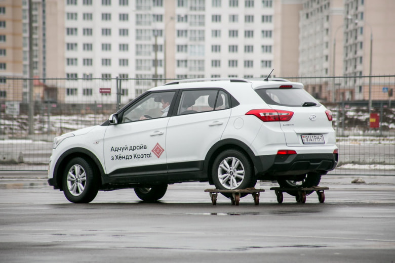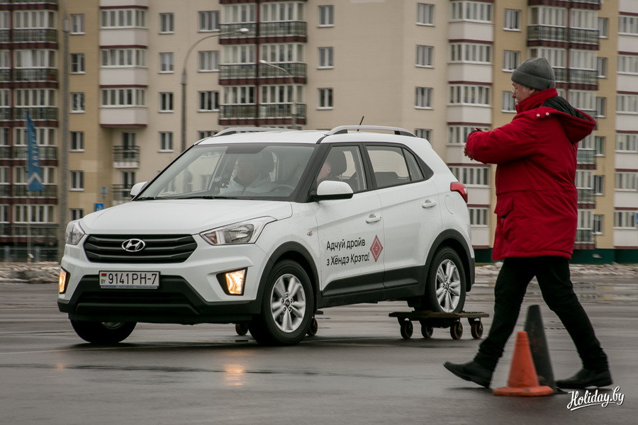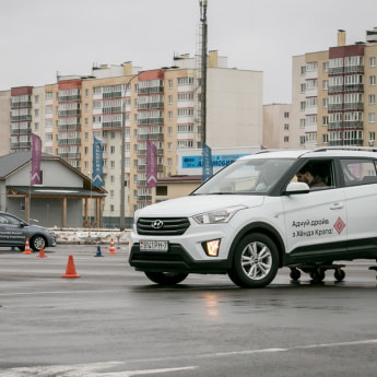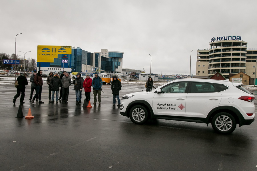 От приветственной мини-конференции с руководством импортёра в Беларуси до юбилейного торта всех присутствующих отделяла полоса препятствий в пять часов, наполненных дождём, ветром, сильными эмоциями и настоящими спортивными переживаниями. Для своих гостей юбиляры из компании «Хёндэ АвтоГрад» приготовили не просто заурядный тест-драйв, а полноценное соревнование на выносливость, в которых ответственность делится пополам между корейскими авто и пилотами. Четыре простых с первого взгляда испытания – змейка задним ходом, управление автомобилем вслепую по командам штурмана, заезд на время и управление поставленным на тележку кроссовером – не были простыми, как семечки. Погода была острой приправой к этому автомобильному деликатесу.