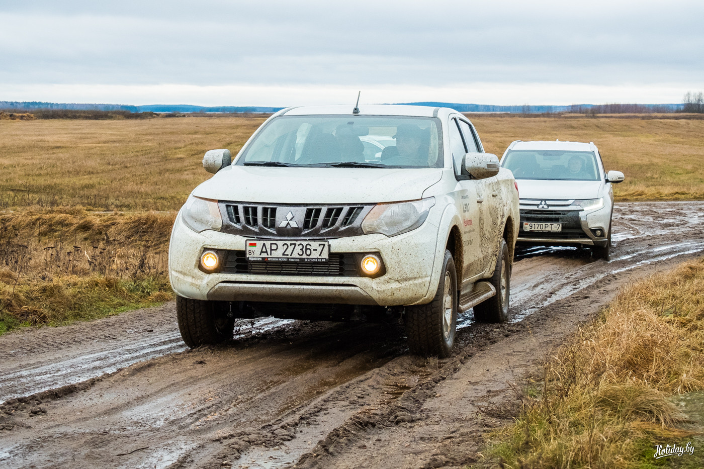 Нет, ехать в путешествие стоит и под Брест, и под Минск. Главное, чтобы автомобиль к этому располагал. В нашем случае караван машин был идеально подобран. Мощные проходимцы Mitsubishi Pajero Sport New и L200 способны увести за собой в авантюрные приключения куда угодно. Оба рамных внедорожника оборудованы новым поколением трансмиссии Super Select 4WD, которая позволяет на полном приводе двигаться как по асфальту, так и пересеченной честности, а переключаться между задним и полным приводом прямо во время движения на скорости до 100 км/ч.