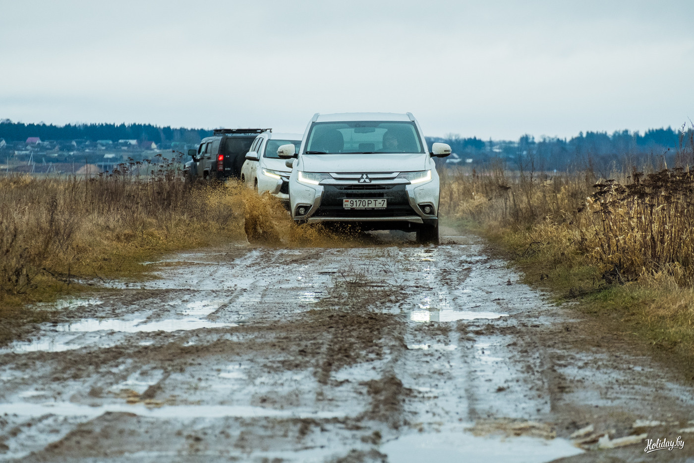 Не ударил бампером в замёрзшую грязь и кроссовер Mitsubishi Outlander последнего поколения, который за счет дорожного просвета в 215 мм и комплекса полного привода S-AWC Mitsubishi не отставал от «тяжёлых» собратьев.