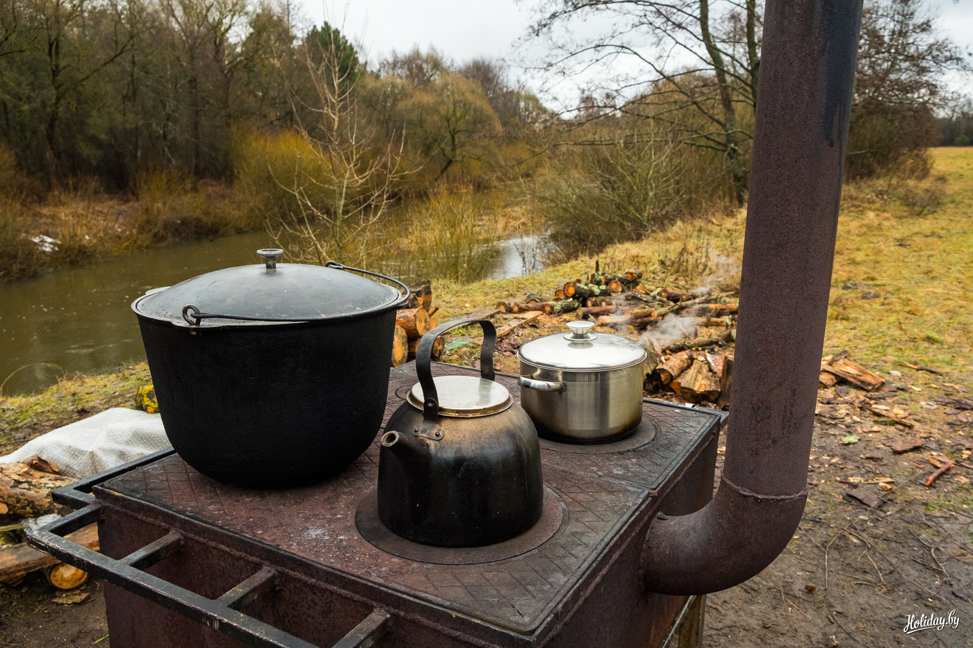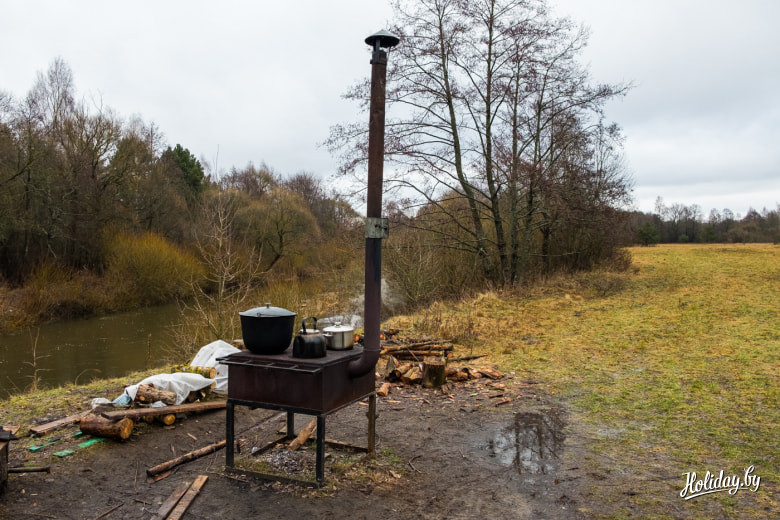 За 70 BYN (около 35 USD) вам поставят в живописном месте Налибокской пущи передвижную баню. Ещё за 5 BYN (около 2,5 USD) с человека обойдется место в беседке на берегу реки Ислочь.