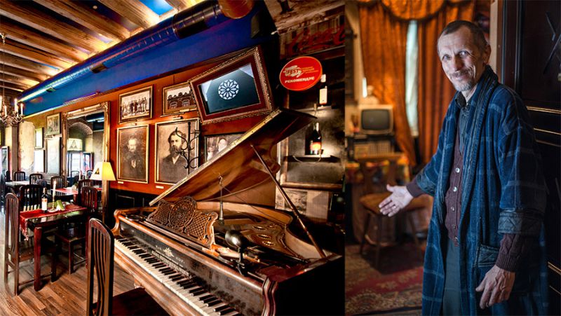 Без специальной карточки здесь все ооочень дорого, а с ней счет уменьшается ровно на 90%. Вывески на этом засекреченном заведении нет, даже вход, и тот замаскирован под обычную квартиру. Постучавшись в дверь, сталкиваешься с паном Петром, облаченным в домашний халат, который объясняет, что «В ресторан Вам не сюда!». И правда, попадаешь в обычную захламленную квартирку с обшарпанными половиками. Но стоит пройти немного дальше, как картина совершенно изменится. Полумрак, мерцание свечей, золоченые рамы, таинственные масонские знаки, треугольники с всевидящим оком, изображения великих масонов…