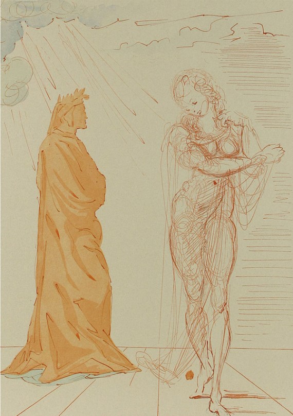 В 1951 году Сальвадор Дали получил заказ итальянского правительства на создание серии иллюстраций к «Божественной комедии» Данте Алигьери и изготовление на их основе гравюр. За несколько лет маэстро нарисовал 100 акварелей: по одной к каждой из 100 песен «Комедии», по-своему интерпретировав наиболее важный момент.