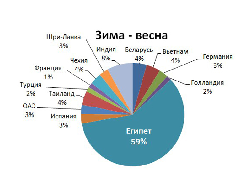 Второе место, хотя и с ощутимым отрывом, занимает Индия. Также в тренде Таиланд, Вьетнам, ОАЭ, Шри-Ланка, курортно-экскурсионная Испания и экскурсионные Чехия, Германия и Беларусь. Остальные позиции в нашем рейтинге поделили между собой Турция, Франция и Голландия.