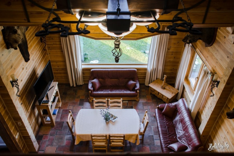Такой дом рассчитан в среднем на компанию до 10-14 человек. Значит, если предположить, что три семьи с детьми решили провести неделю в одном помещении (условно, назовем эту забаву отдыхом), то по самым примитивным расчетам каждая заплатит около 800-1 000 долларов за 7 дней (без питания). За баню тоже нужно доплатить отдельно: аренда обойдется в 100 белорусских рублей за три часа. Есть вариант снять половину дома.