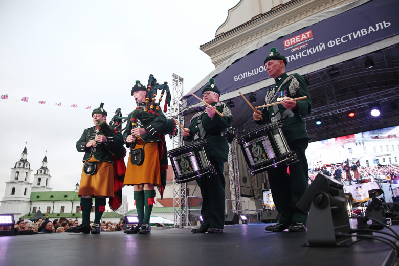 “Юнион Джек” по всему Верхнему городу, парни в юбках и по-британскому “свежая” погода — в субботу в Минске прошел первый фестиваль культуры Великобритании.
