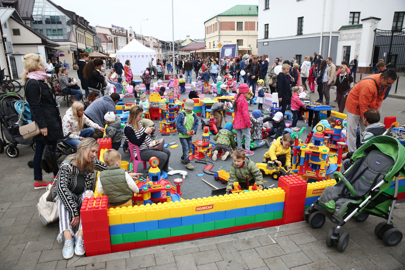 А в самом “сердце” улицы малыши играли в большой конструктор: парни, скорее всего, строили крепость, девчата - кукольный домик.