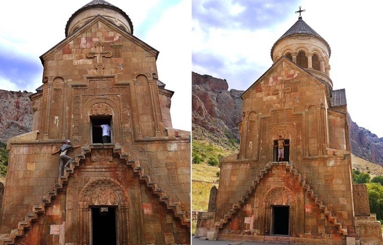 Расстояние от Еревана до Нораванка 120 км преодолевается примерно за полтора часа. На пути в Нораванк вы обязательно минуете необычное кафе, вырубленное прямо в скале.