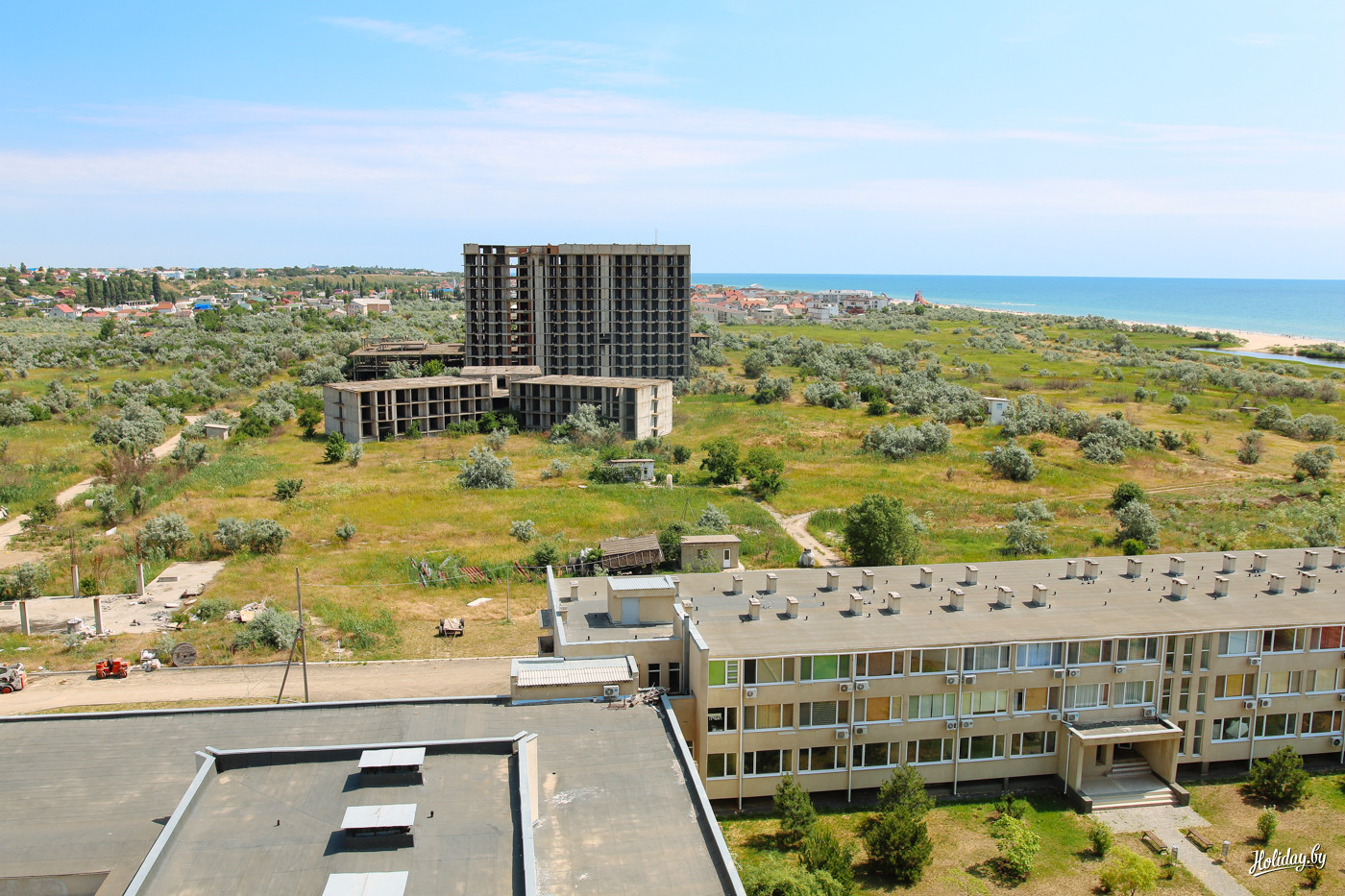 Но ещё лет через семь будет огонёк. Суть в том, что не так давно частники выкупили недостроенный санаторий и всю прилегающую к нему огроменную территорию, и превратили корпуса в апарт-отель.