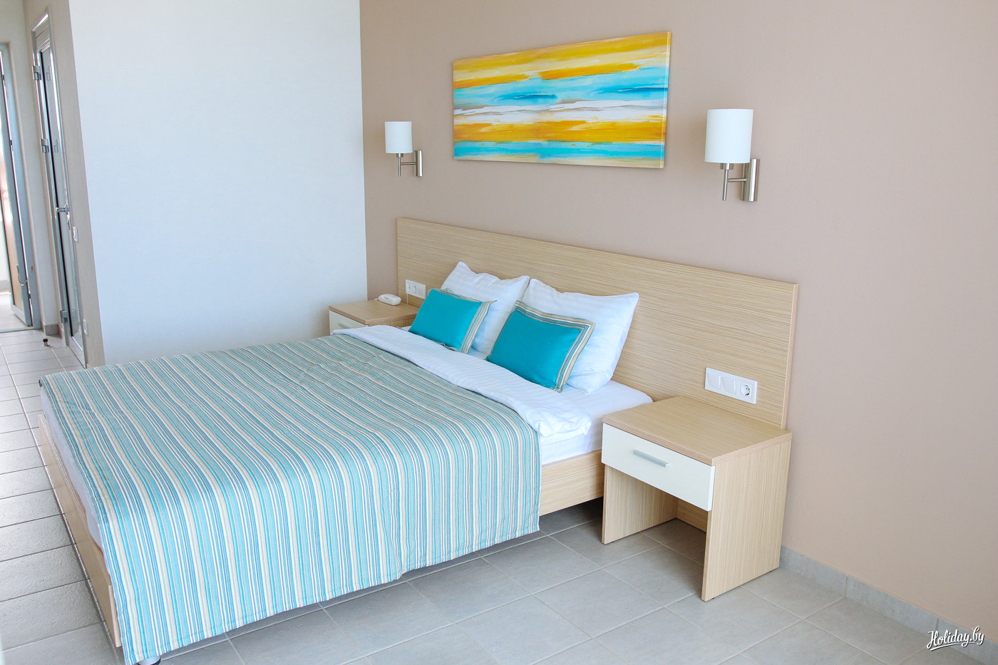 Собственный пляж с беседками, огромный бассейн у ресторана, нестандартное решение для коридоров с открытыми всем ветрам галереями. Все номера вне зависимости от категории имеют вид на море. В них знатно поработал дизайнер интерьеров.