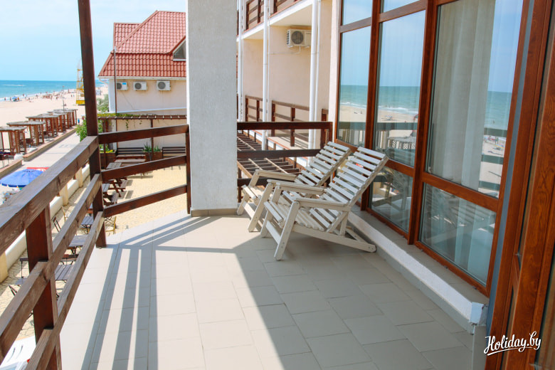 Как сегодня принято говорить – это «топчик» в плане цен на отдых в Затоке. Стандартный 2-местный номер в сутки в пик сезона стоит 2550 грн или 194 BYN. Если вы хотите жить как бог Затоки в огромном люксе с террасой, то в сутки надо приготовить 4550 грн или 345 BYN.