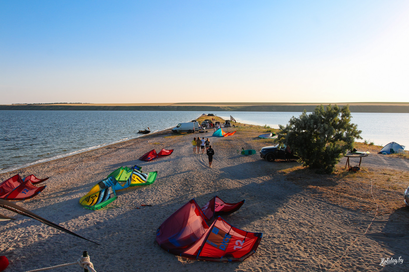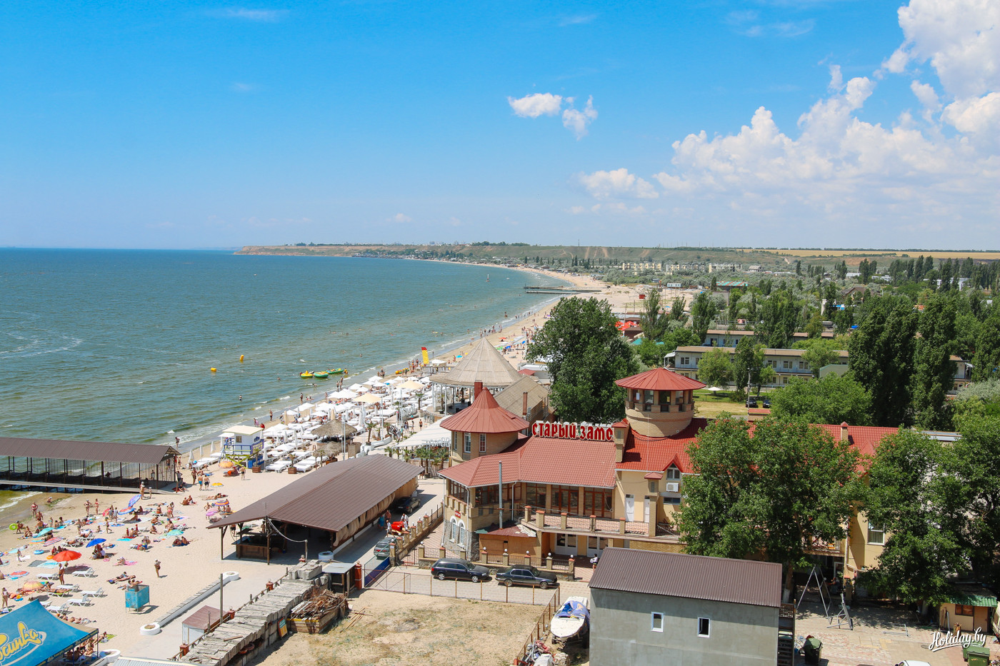Придётся мириться с большим количеством соседей и отсутствием прямого спуска к морю. Уверен, что шашлык с видом на море становится в три раза вкуснее. Даже базы на самой косе не имеют такого роскошного вида.