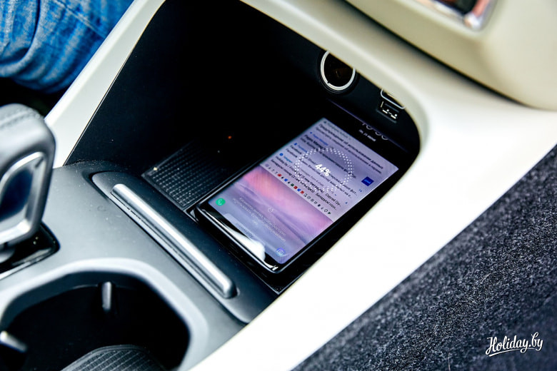 Беспроводная зарядка смартфона – оценил! «Бязмежнае» салонное зеркало заднего вида роскошно.