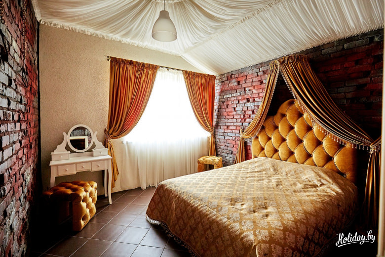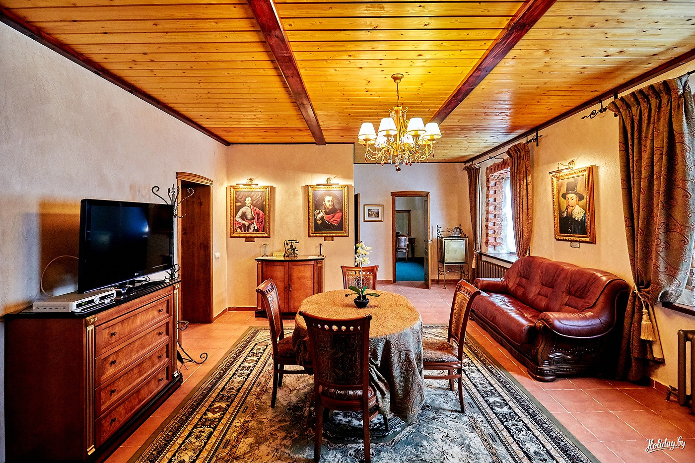 Например, самый дорогой номер в бутик-отеле стоит примерно 400 BYN (около 200 USD) за ночь. За эти деньги вы проживаете в двухкомнатном люксе, стилизованном под интерьеры эпохи. Такой вариант кажется слишком дешевым? Не расстраивайтесь, бутик-отель сдается и целиком. А вот если захотите почувствовать себя не просто шляхтичем, а представителем настоящего магнатского рода, то придется раскошелиться по-взрослому.