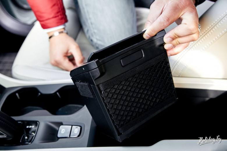 Прорези для часто используемых карточек или пропусков. Контейнер для «бытового» мусора в подлокотнике – очень удобно.