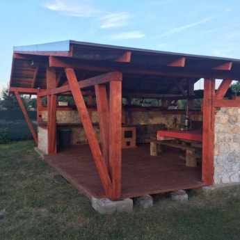 Беседку можно арендовать отдельно от дома. Рядом установлен мангал, оборудована площадка для приготовления шашлыков.