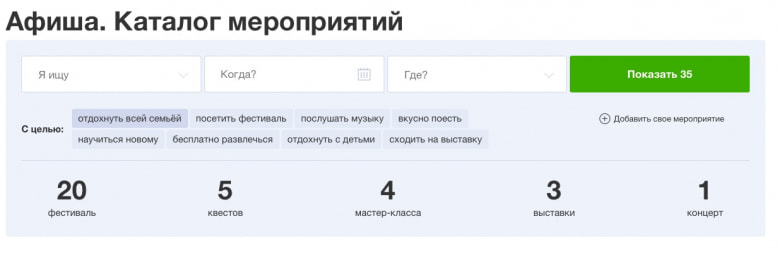 Афишу будет характеризовать упрощенный формат - когда всю необходимую информацию можно раздобыть в два клика. Также в разделе будет представлено много локальных мероприятий по регионам. На некоторых мы побываем лично и подготовим интересный фотоотчет - чтобы вы понимали, стоит ли туда ехать.