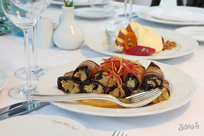 Не могу назвать грузинскую кухню разнообразной с точки зрения «номенклатуры блюд». Практически везде для начала подадут салаты и овощные закуски с орехами.