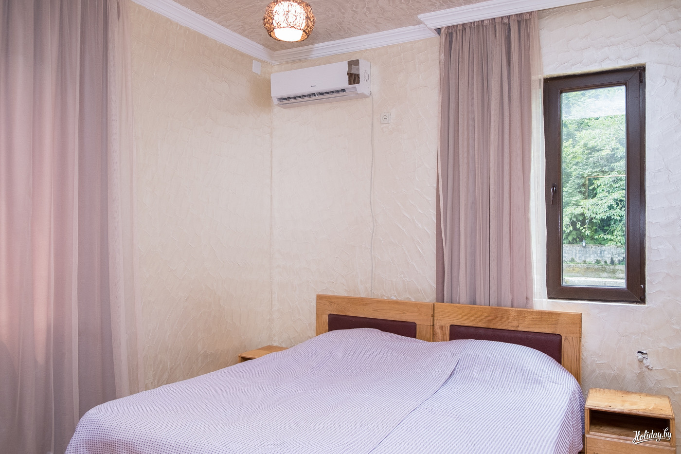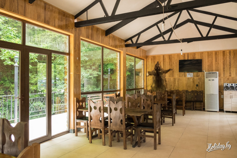 Здесь же можно переночевать или остаться на отдых в гостевом доме. Стандартная комната за 60 лари (примерно 48 BYN) и 70 лари (примерно 56 рублей) за большую комнату за ночь. Во всех комнатах кондиционер, ТВ и собственный санузел. К слову, в стоимость ночёвки войдет завтрак. Хорошо пообедать тут обойдется в 25 лари – около 20 рублей – на взрослого человека. Страница форелевой фермы в Facebook по ссылке. Заказать столик или проживание можно по телефонам +995 (595) 51-79-71 или +995 (595) 75-75-50