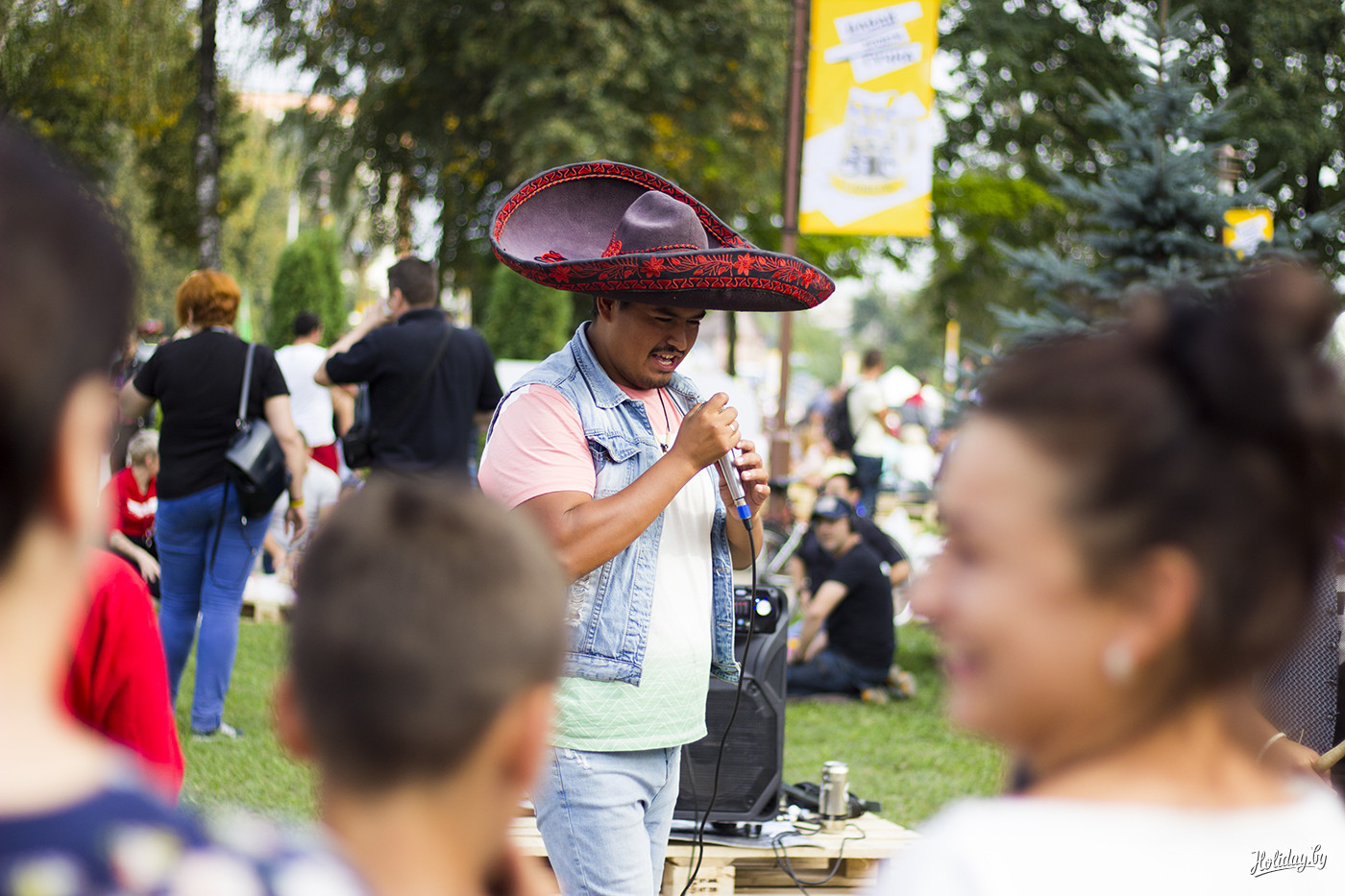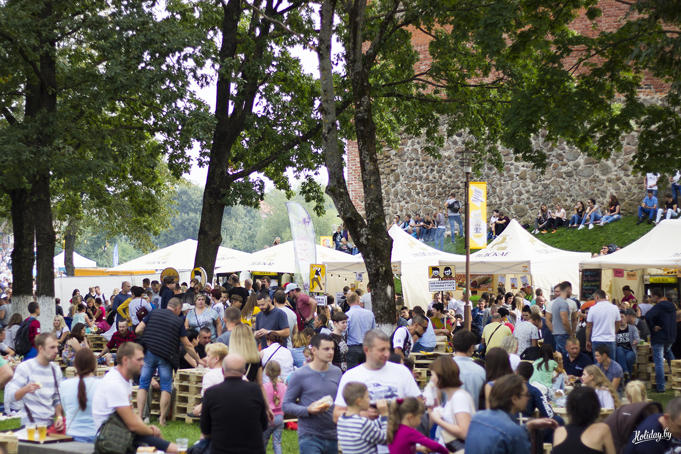 Праздник лидского пива “захватил” половину Лиды: начинался от озера возле замка и заканчивался площадкой у Дома культуры. “Большому пространству больше зон!” - подумали организаторы феста и разместили на улицах города несколько фудкортов, ярмарку с мерчем и изделиями от ремесленников, аттракционы для самых маленьких, развлечения для взрослых и две музыкальные сцены. И если до последних нужно было долго и целенаправленно идти, то развлекательные споты расположились через каждые пять метров. А если ты не находишь их, найдут тебя. Не споты, конечно, а волонтеры в ярких желтых майках с программами, играми и складывающимися шляпами.