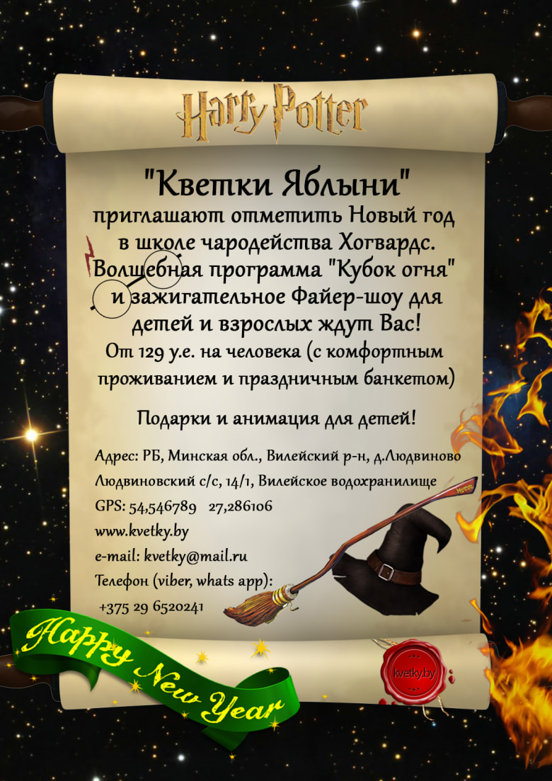 Усадьба "Кветки яблыни" анонсировала новогоднюю программу на 2019 год. Как и в прошлом году, всех гостей приглашают на одну ночь стать учениками необычной школы волшебства. Стоимость программы - от 129 у.е. с человека (с проживанием и праздничным банкетом).