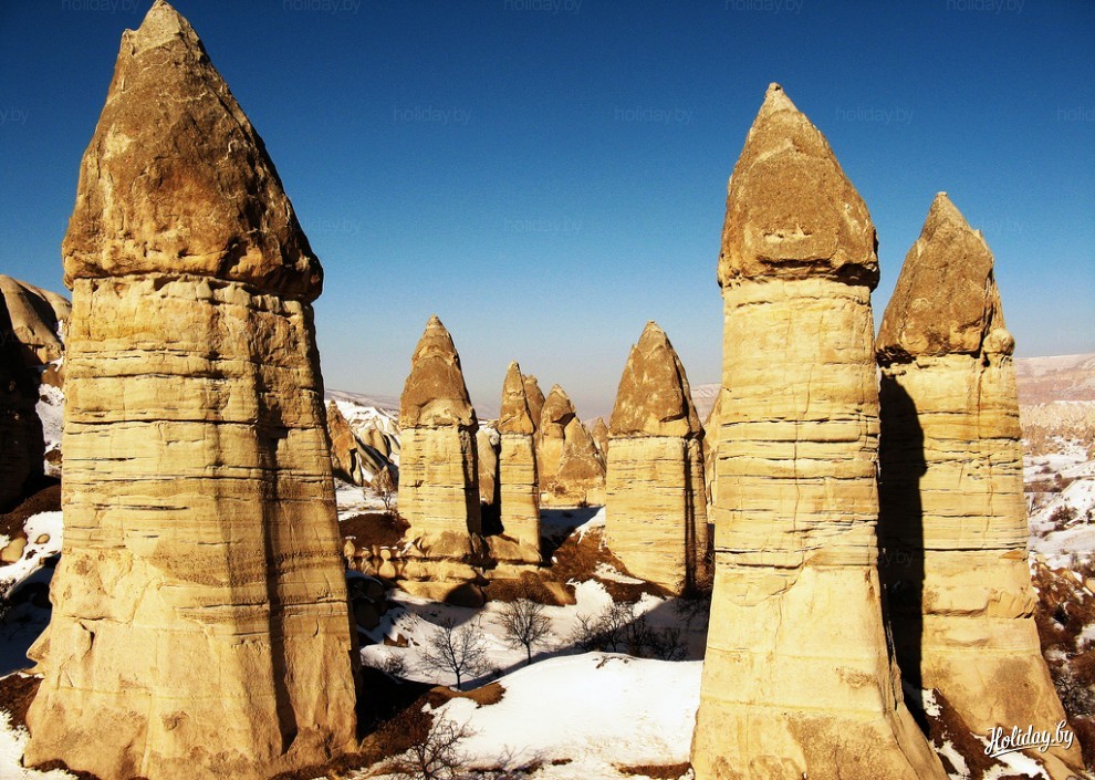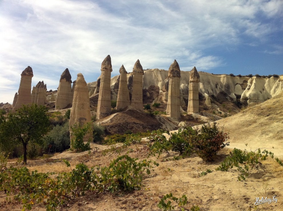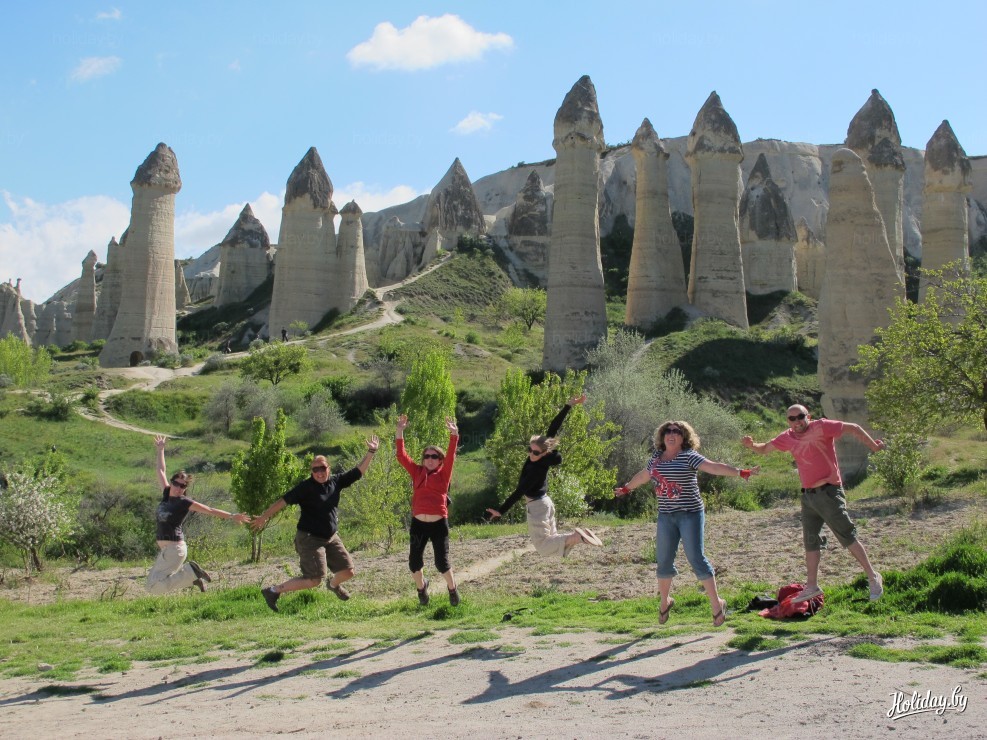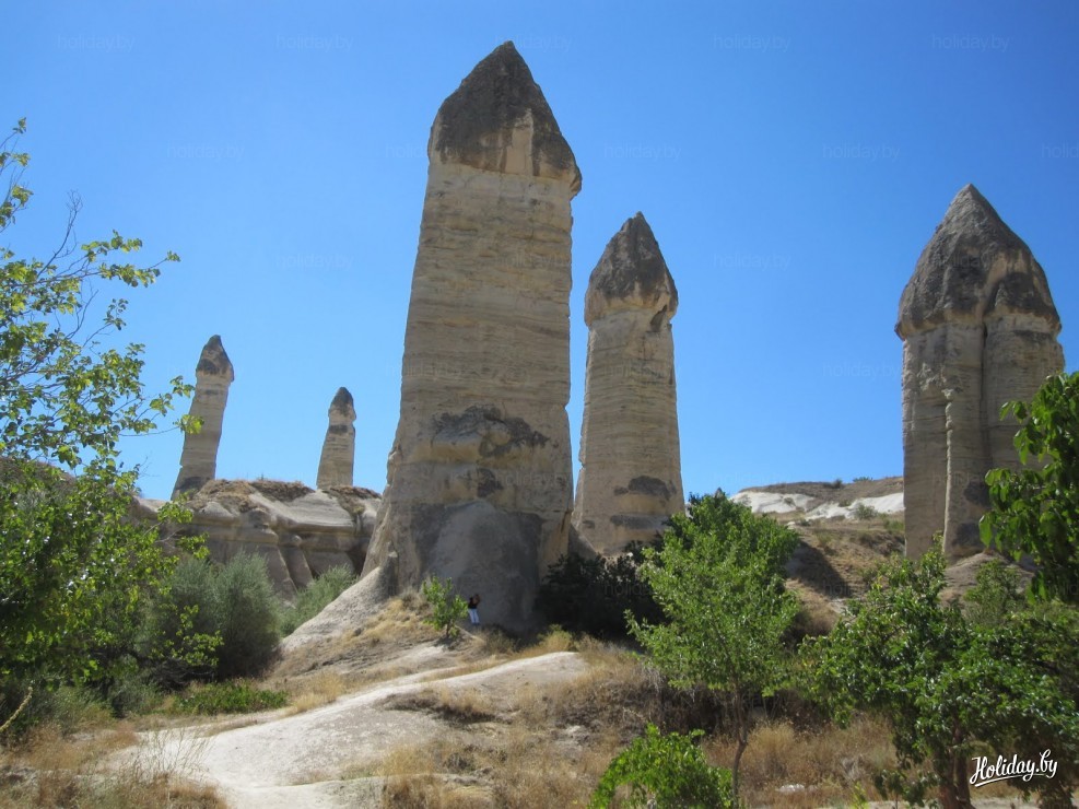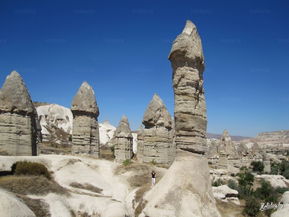 По поводу чуда света, - это ещё вопрос нерешённый, а вот чудо природы гарантированное. Эти необычные скальные скульптуры действительно созданы самой природой. Поговаривают, правда, ещё и об инопланетном происхождении, но это для фанатов уфологии. Нам же нравится земная версия происхождения каменных фигурок. Много миллионов лет назад в этой местности бушевали вулканы, извергавшие тонны пепла и лавы, которые покрыли километры скал и долин. Затем под воздействием атмосферных осадков и ветров более мягкие каменные породы вымывались и выветривались, а те, что попрочнее выступали на поверхность. Так и образовались перибаджалары – скалы-столбы с «шапками» на вершинах. Самые причудливые фигуры находятся в Долине любви.