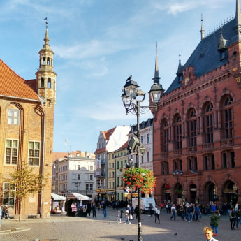 Совершенно непохожий на Познань и Гнезно, город Торунь манит любителей готической архитектуры. Город, практически не пострадавший в период Второй мировой войны, славится интересным сочетанием польской и немецкой архитектуры. За богатство историко-культурного наследия Торунь иногда называют «Краков Севера». Исторический центр переполнен готической архитектурой: старая ратуша, руины тевтонского замка, готические соборы и оборонительные городские стены с готическими воротами и дозорными башнями. Вечером самый прекрасный вид на Старый город открывается с другого берега Вислы.