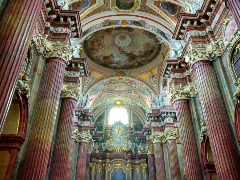 Здесь же можно увидеть шедевр римского барокко, один из самых красивых сакральных объектов города – Иезуитский костел святой Марии Магдалины. Строительство костела началось в 1651 году и длилось более полувека. Ярко-розовый фасад с пилястрами, золочение, мрамор и лепнина в интерьере подчеркивают роскошь римского барокко. Интерьеры костела поражают своей красотой и пышностью, а знатоки считают его эталоном этого архитектурного стиля. Внутри костела также можно полюбоваться органом мастера Фридриха Ладегаста, установленным еще в 1876 году. Рядом с костелом расположено здание бывшей иезуитской школы, образующее с костелом единый архитектурный ансамбль.