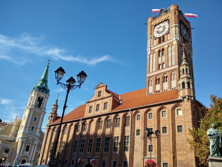 Главной архитектурной доминантой центра Торуни является городская ратуша, построенная в конце XIII века. Сейчас в этом здании находится музей истории города, где собрана большая коллекция артефактов, показывающих его историческое развитие.