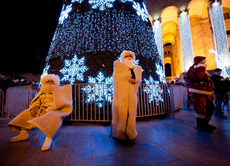 Жареный поросенок, сациви, баклажаны с орехами, блюда из мяса, птицы и рыбы, ароматная зелень, хачапури, чурчхела, гозинаки и это далеко не все… В полночь — салют, ну а потом душевные разговоры и танцы до утра. Да, мы предлагаем вам полететь в Тбилиси. Этот народ умеет праздновать!