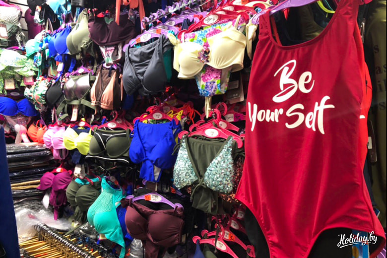 Самые экономичные туристы могли бы вложиться и в 40 BYN. Платья и парео здесь от 8 BYN, шорты, шляпы и шлепки — от 5 BYN.