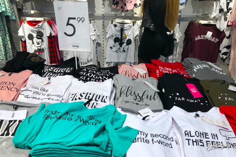 Во всех магазинах цена маек начиналась от 4-5 BYN. Средний ценник — 11-12 BYN. Мы старались выбрать дешевую, но качественную одежду, чтобы в ней было комфортно в 30-градусную жару. К счастью, маек было достаточно, ведь такие вещи актуальны в любой сезон: не на выход, так в помещении можно ходить.