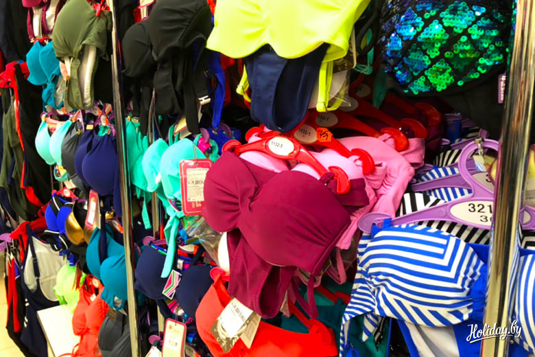 В ТЦ “Импульс” бессменно из летнего продаются только купальники. Еще бы, как их не продавать, если точка так и называется “Купальники и нижнее белье”. Правда, скидок вы тут не найдете, только справедливые цены. Минимальная цена за купальник 25 BYN, максимальная — страшно представить. Но 70 BYN во всех точках были нормой.