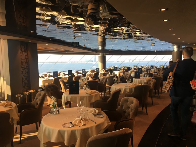Дарья: - Запоминающийся и самый сногсшибательный элемент – лестницы, усыпанные камнями Сваровски. Одна из фишек лайнера - потолок крытого променада выполнен в виде огромного светодиодного экрана, на котором транслируются различные изображения, создавая особую атмосферу.