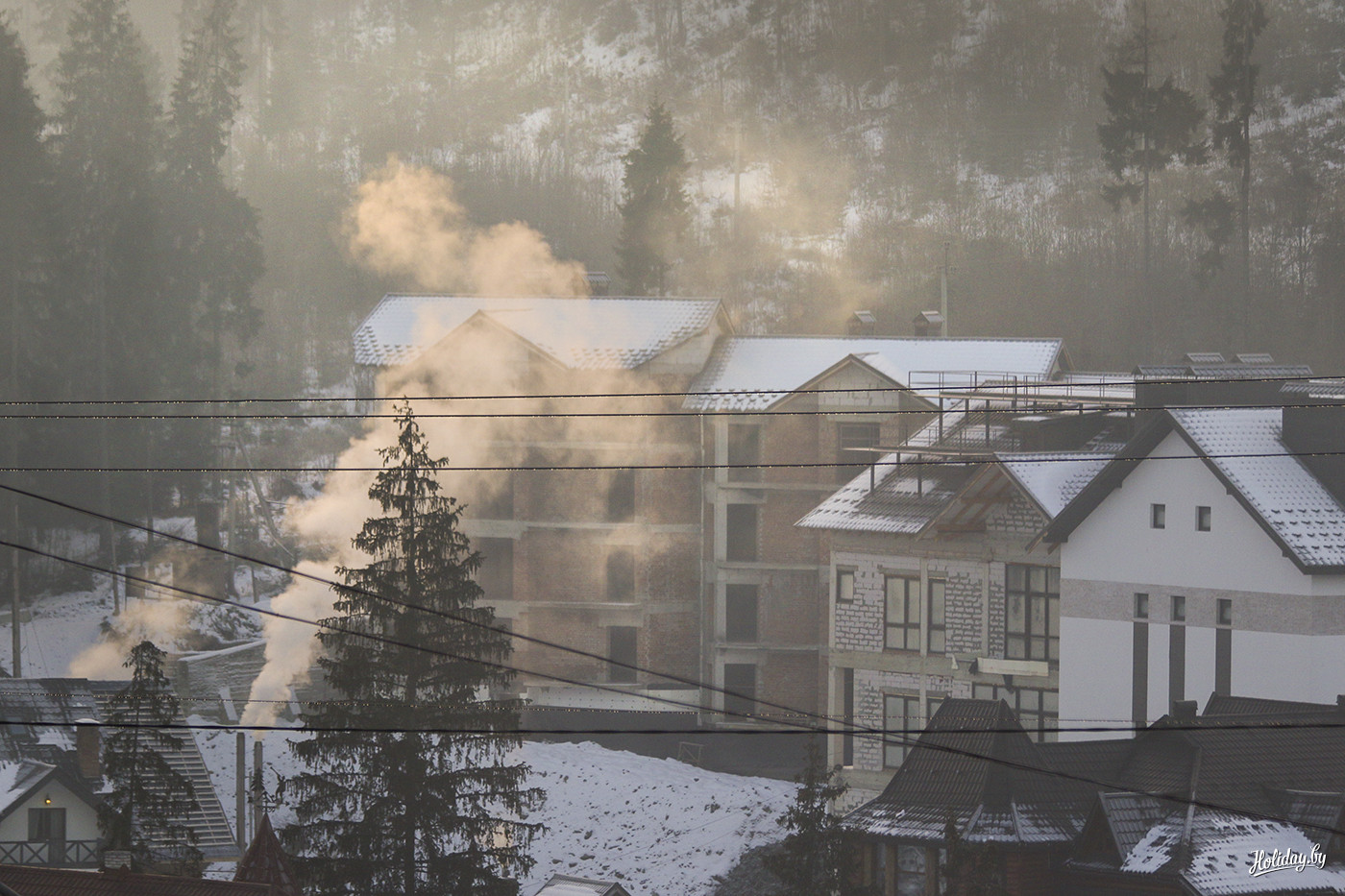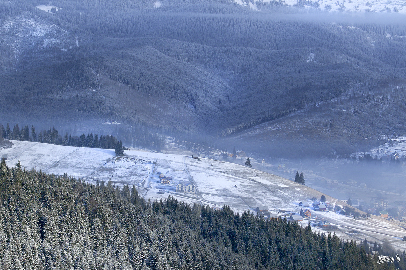 Да ведь это настоящая зимняя сказка. С этой мыслью ты выходишь из туристического автобуса, с ней же заходишь в бревенчатый отель, вдыхаешь морозный воздух, пробуешь обжигающе горячий борщ, поднимаешься на гору, пьешь глинтвейн и пытаешься хоть как-то заснять то, что видят глаза и категорически отказывается видеть объектив телефона.