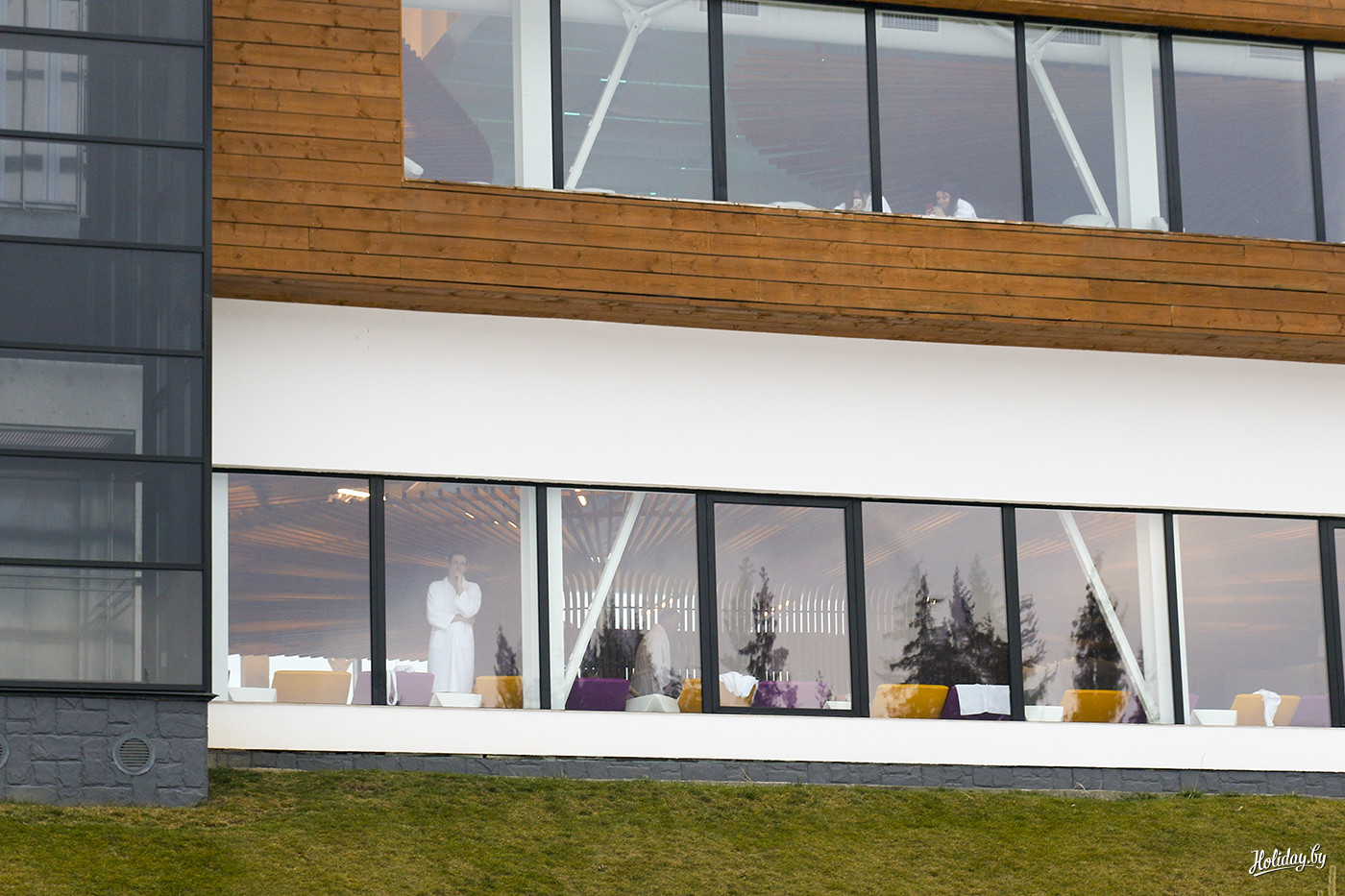 Никаких совместных вечеринок и посиделок для туристов; персонал дружелюбен, но сдержан. Уютные стильные номера, симпатичный холл, комната для сушки и хранения лыж. Кстати, единственное место в Буковеле, где в ресторане подают суши. Конечно, это все равно такие немного украинские суши :) Но зато официант будет похож на официанта, а не на кума, который тебе денег должен.