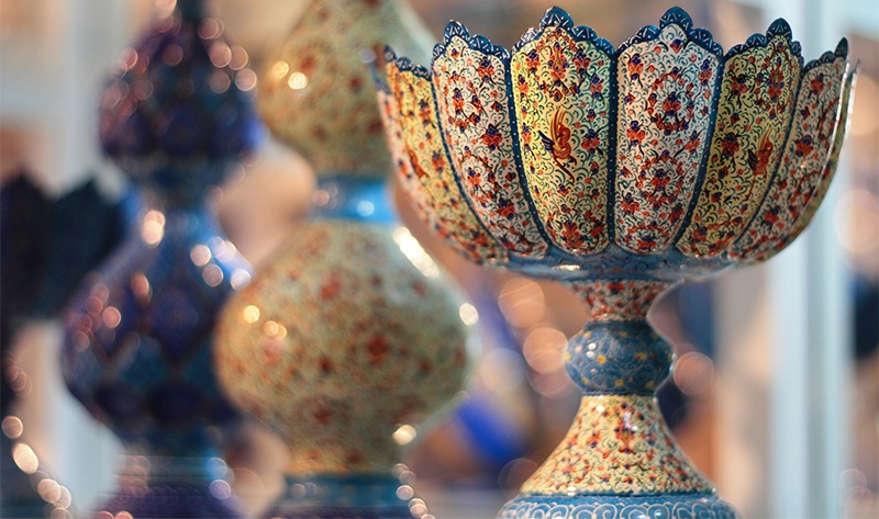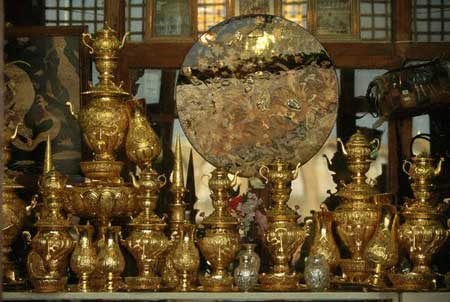 Базар Исфахана - тысяча и одна ночь как она есть и один из старейших и крупнейших базаров на Ближнем Востоке. Персидские ковры, кружевное серебро ручной работы, медная расписная посуда….Все той же лазоревой плиткой облицованы ворота, а многочисленные арки уводят потрясенного путника под темные своды. Рассматривать сокровища, где вполне может попасться и лампа Алладина.