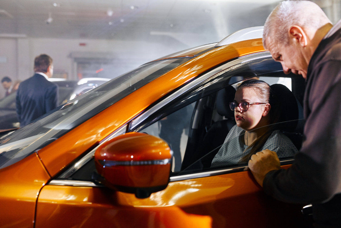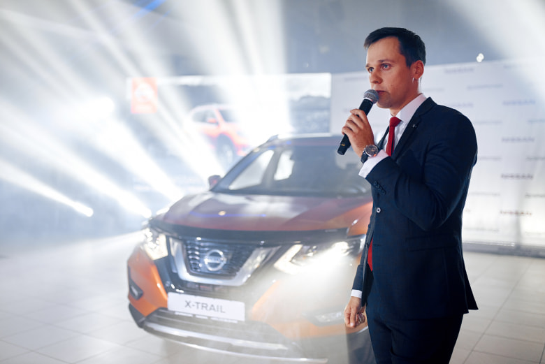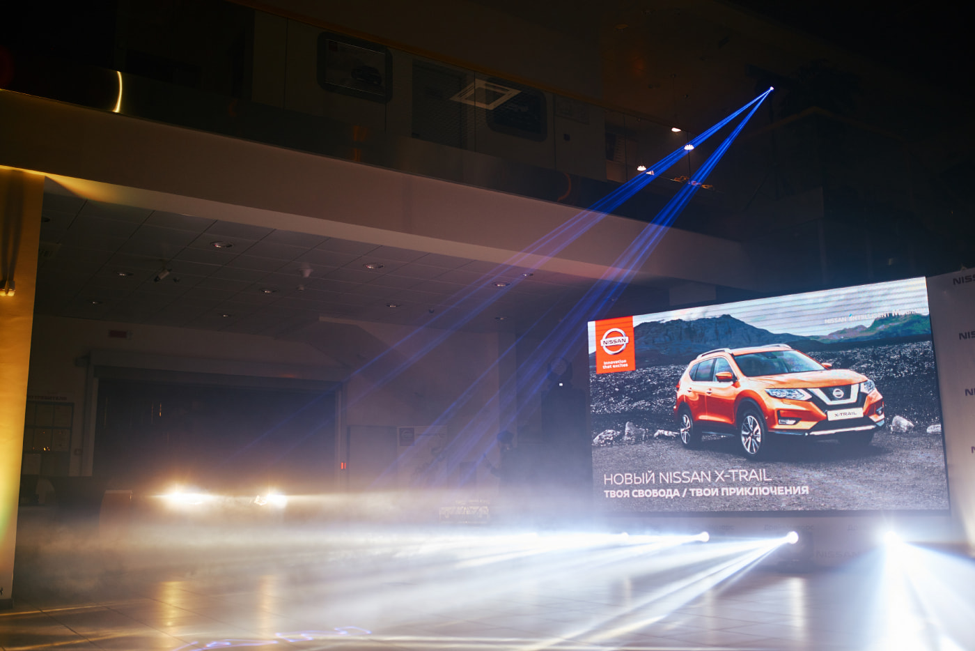 Знакомство с автомобилем проходило в обстановке, которая полностью передавала дух путешествий, открытий и комфорта Nissan X-Trail. Для гостей была организована зона отдыха с каминами, меховыми шкурами и все это располагалось в импровизированном шале. После приветственной части гостей пригласили в центр зала, где прошла официальная презентация автомобиля. Обновленный Nissan X-Trail выехал из дымки поднятых ворот и припарковался в центре зала, приковывая к себе взгляды всех гостей.