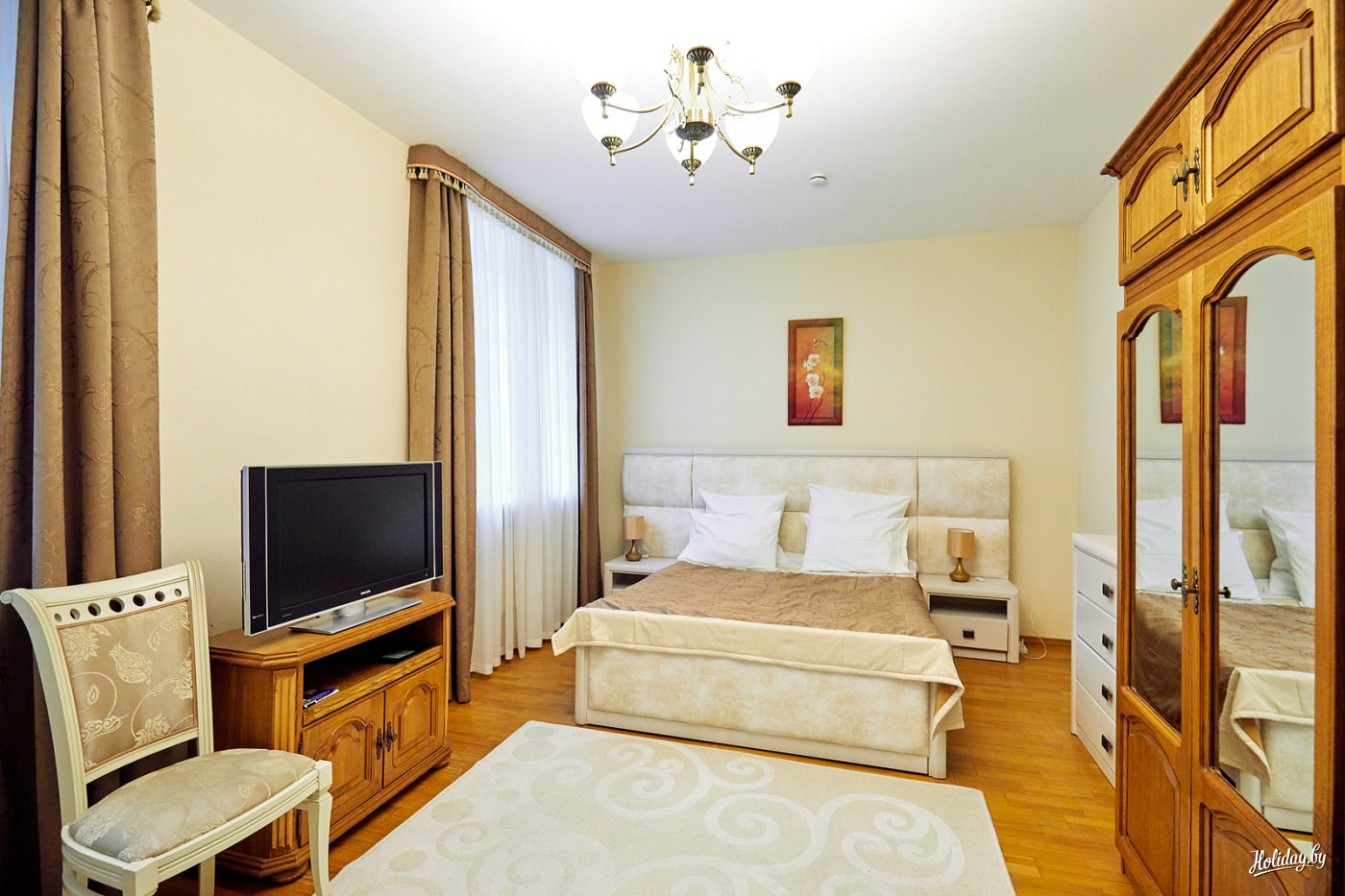 Номер люкс на двоих в сезон отдают за 167 BYN/сутки. Полулюкс – за 148 BYN/сутки. Одноместный – за 138 BYN/сутки.