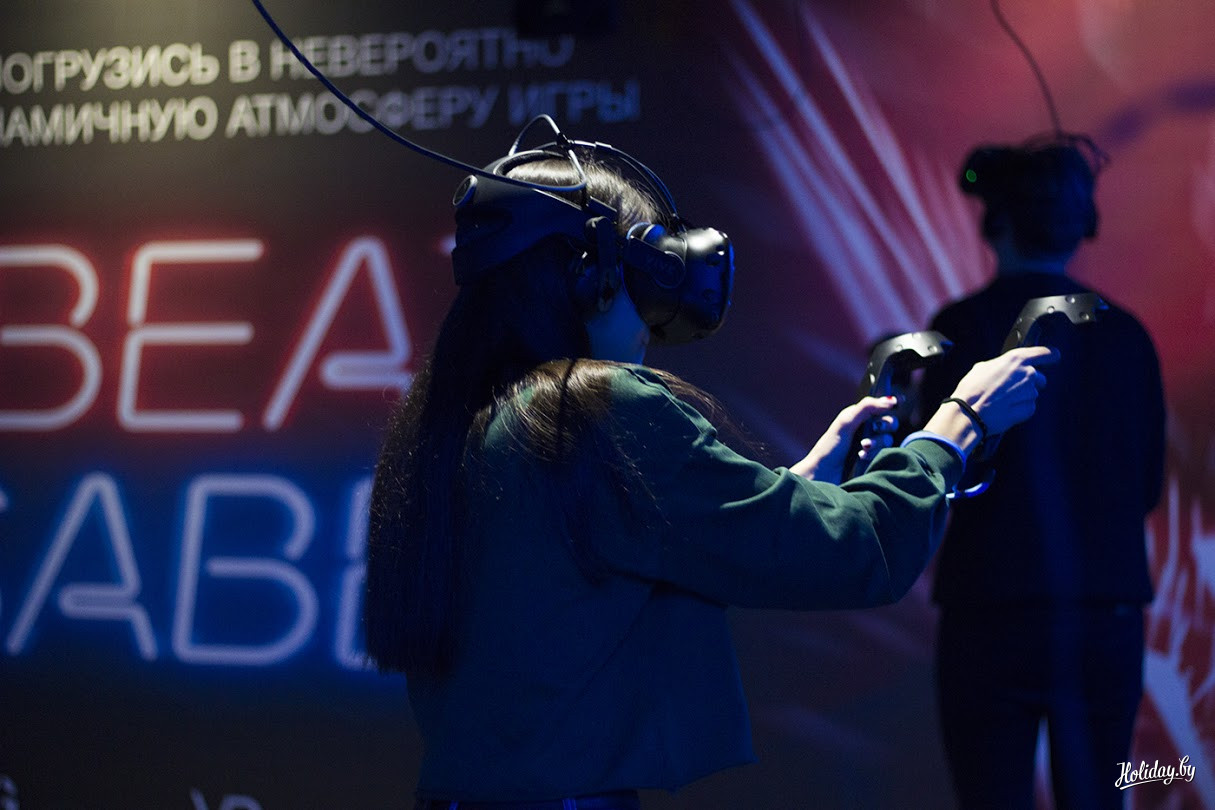 Революционной для Беларуси, Европы и мира является площадка Polygon VR. Это вторая в мире разработка беспроводного погружения в виртуальную реальность. Игроки “облачаются в датчики” и могут беспрепятственно передвигаться по полю. Но, что самое интересное, они могут играть в VR поединки и с людьми из других стран.
