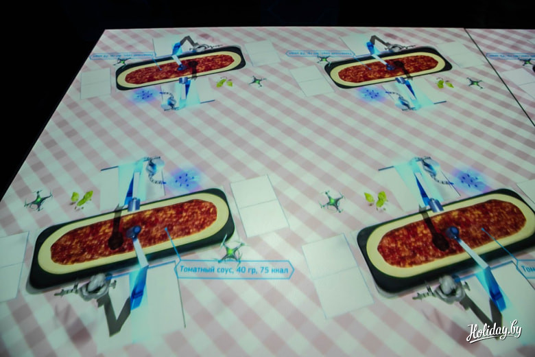 Лучше расскажу про поваров в VR-Cafe. Это дроны и роботы, которые готовят пиццу прямо перед посетителями. И пока мы всячески пытались запомнить рецепт “уникальной пиццы Teleport”, реальные повара готовили ее на кухне. Виртуальное представление закончилось, и вот уже перед нами настоящая пицца. Причем одна пицца на одного человека.
