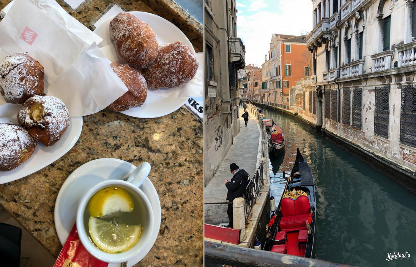Февраль — время венецианского карнавала. И если ехать сюда зимой, то однозначно на это праздник! Ресторан «Pasticceria Nobile». Здесь лучшие во всей Венеции фриттелли! Frittelle — пончики с кремом, хотя нет, скорее, это крем с пончиками. Их готовят исключительно под венецианский карнавал, поэтому в любое другое время вы их не найдёте. Фриттелли продаются с тремя начинками: с кремом (мой любимый — классический), с изюмовым кремом (очень даже, хоть и не люблю изюм), и с кремом забайоне (насыщенный вкус, с ароматом рома, для любителей алкогольных десертов). Пробовать нужно все! Мы взяли по три :)