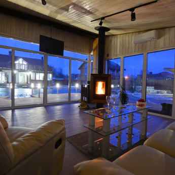 Один из самых стильных коттеджей под Минском - с французскими окнами в пол, спальней в 70 квадратов, барбекю и полем для мини-футбола. Действует акция для всех влюбленных: романтический ужин + 4 часа в гостевом номере с террасой и кинотеатром.