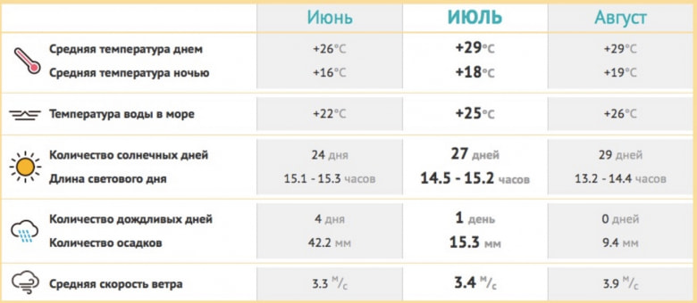 Теперь давайте посмотрим среднюю летнюю температуру по курортам: