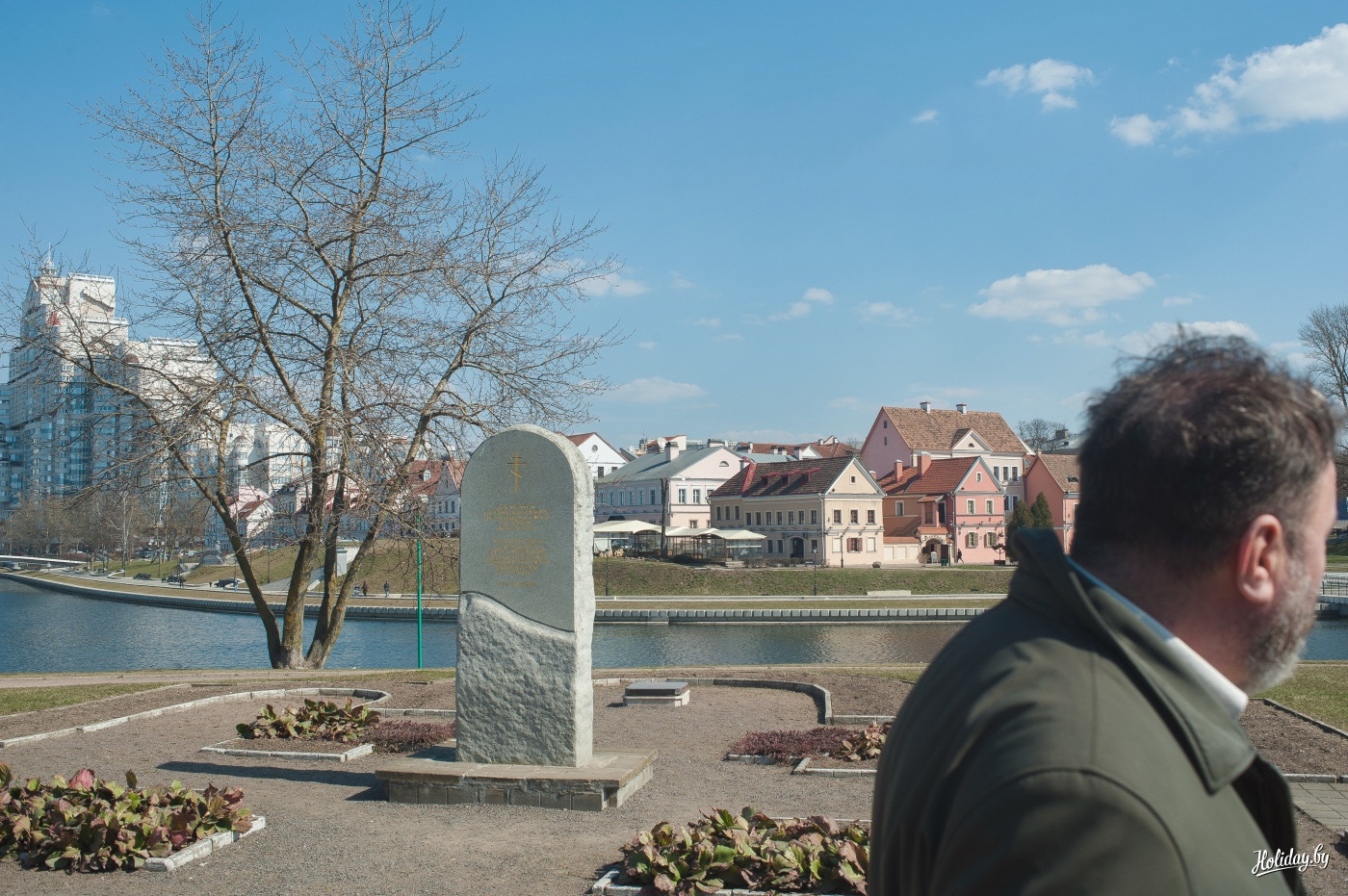 — Вот это любимое место пьяниц и алкоголиков — на самом деле, своеобразная музефикация того нехарактерного для Беларуси храма. Когда праздновали 900-летие Минска, его зачем-то выложили на старых татарских огородах. Так и оставили. Кстати, в подписи самого памятника есть ошибка. Храм не одиннадцатого века, а двенадцатого.