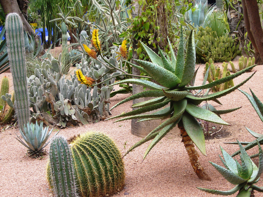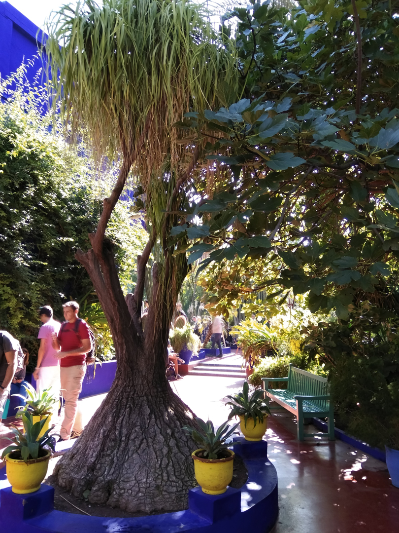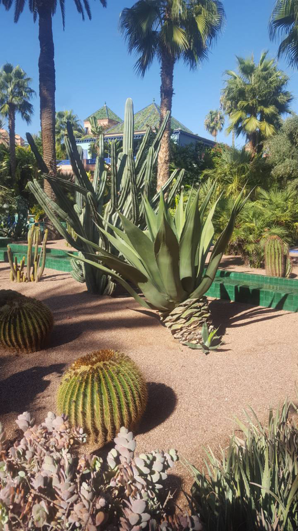 Насладившись вдоволь культурными достопримечательностями Марракеша, мы отправились любоваться творениями природы в очаровательный Сад Мажорель (от имени создавшего его в 1919 г. французского художника) с редчайшими растениями из разных уголков мира. Позже сад выкупил известный модельер Ив Сен-Лоран. Здесь и лотосы из Китая, и кактусы из Мексики, бамбук, банановые деревья, пальмы и оригинальные цветы из Южной Африки. Здания и фонтаны с прудиком на территории сада выкрашены в контрастный ярко синий цвет, а цветные вазончики по всему пространству сада создают дополнительный антураж. Здесь также в бывшей студии художника расположен музей исламского искусства с предметами берберской культуры и личной коллекцией модельера.
