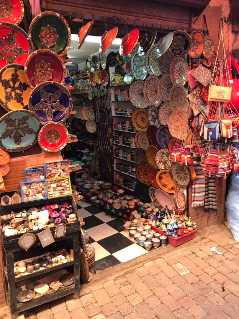 В медине Марракеша имеется также свой рынок со всевозможным выбором товаров – изделий из меди, ковров, украшений, кожаных аксессуаров, сувениров, продуктов, косметики. Правда, здесь вы можете столкнуться с определённой навязчивостью местных продавцов.